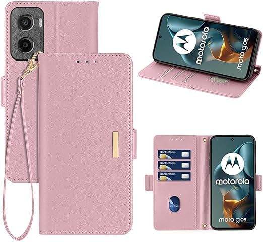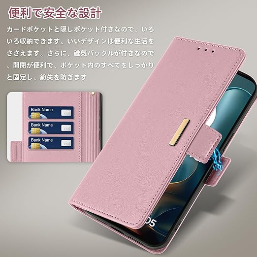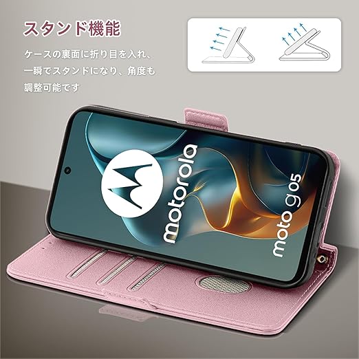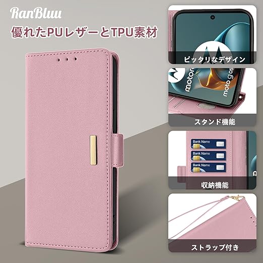 RanBluu コンパチブル Motorola Moto G05 ケース 手帳型 モトローラ g05 用 高級PU レザーケース カバー スマホケース 財布型 カード収納 マグネット カメラ保護 横置きスタンド機能 ストラップ付き 耐摩擦 耐衝撃 全面保護(MOTO G05 対応 ピンク) a