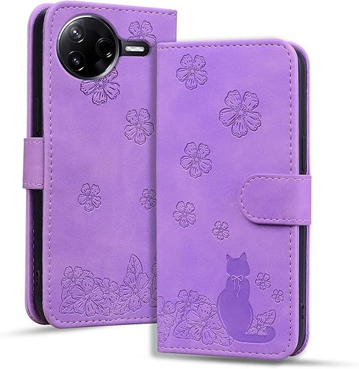 KW-LINK Xiaomi POCO F7 Pro ケース 手帳型 POCO F7 Pro 手帳型ケース かわいい 猫の後ろ姿 ポコF7プロ 携帯カバー シャオミ ポコ f7 proケース 手帳型 POCOF7Pro スマホケース 財布型 スタンド機能 マグネット式 薄型 軽量 美しい 桜の花 - パープル a