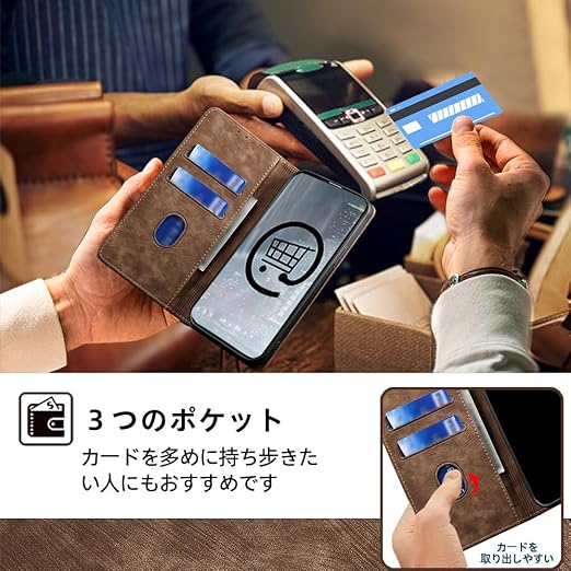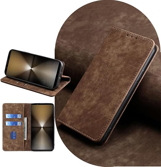 AiMaoo Sony Xperia 1 VII 対応 ケース 防塵 耐衝撃 傷つけ防止 軽量 手作り PUレザー カード収納 RFID磁気防止 マグネット スタンド機能 ケース 手帳型 Sony Xperia 1 VII 用 (ブラウン) a
