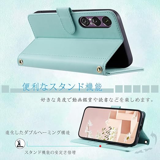 UnivoColors Sony Xperia 1VII(SO-51F/SOG15)キルティングレザー調 手帳型ケース エレガント 高質PU マグネット開閉式 カード収納機能 スタンド機能 液晶全面保護 レンズ保護 ストラップ付属(ミントグリーン) a