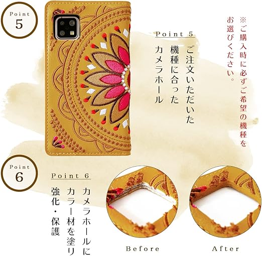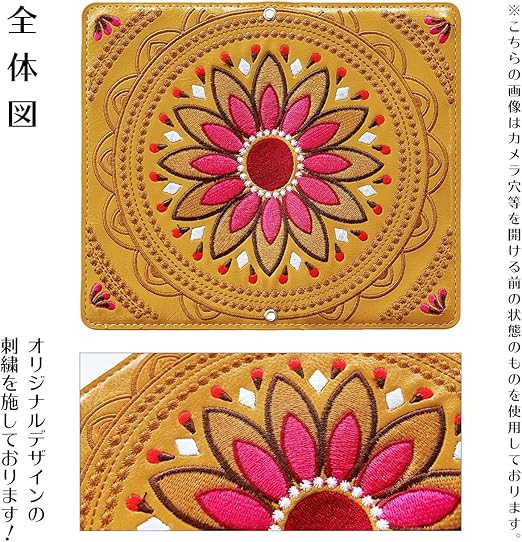 Xperia 10 Ⅳ SO-52C SOG07 ケース カバー 手帳型 SO-52Cケース SOG07ケース SO-52Cカバー SOG07カバー SO-52C手帳型 SOG07手帳型 Xperia10Ⅳ Xperia10Ⅳケース エクスペリア テン マーク4 SO52C エスニック 刺繍 ノーブランド イエロー a