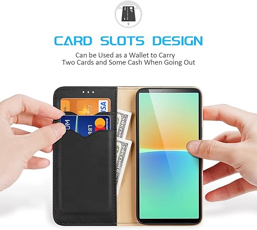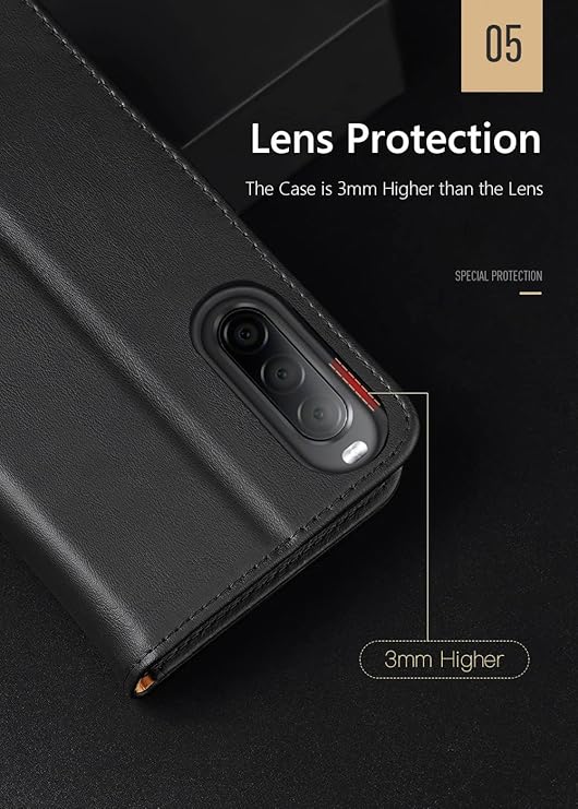 【WISH Series 高級牛革】Xperia 10 IV ケース 手帳型 本革 スマホケース[docomo SO-52C / au SOG07 / SoftBank対応] エクスペリア テン マークフォー カバー 全面保護 カード入れ スタンド機能 耐衝撃 耐摩擦 人気 おしゃれ ギフトボックス付き (Xperia 10 IV ブラック) a