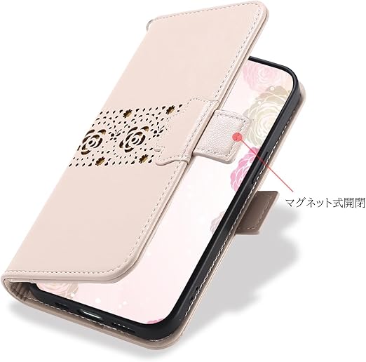 Xperia 10 V SOG11 ケース 手帳型 可愛い 多機能ケース 肌らしい手触り 透かし彫り工芸 キラキラ ストラップ付き エクスペリア10v スマホケース おしゃれ 女性 花と胡蝶柄 サイドマグネット開閉 スタンド機能 Xperia10V 手帳型レザーケース 使いやすい カード収納付き ブック型 縦置きカードポケット すっきり クリーム色 a