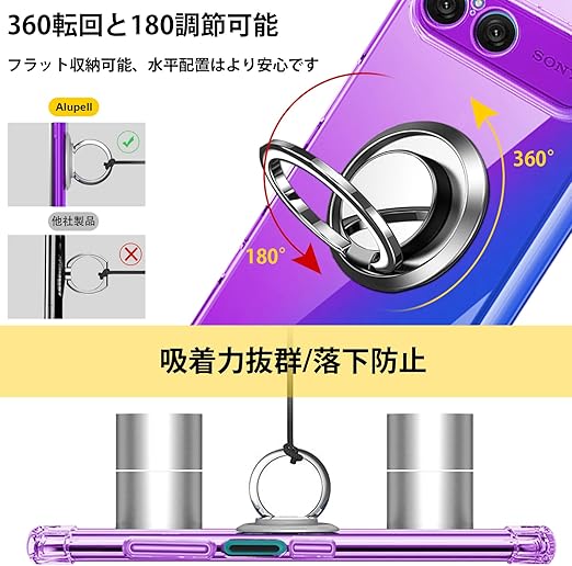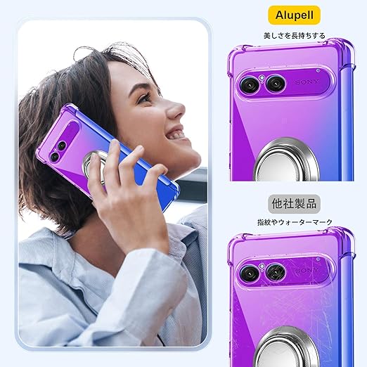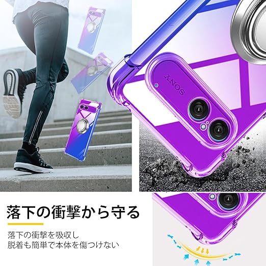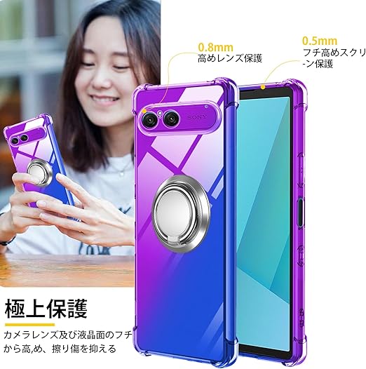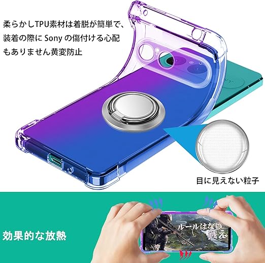 For Xperia 10 VII ケース リング TPU 薄型 軽量シリコン グラデーション色 ケース 耐衝撃 指紋防止 車載ホルダー対応 防塵 一体型 人気 携帯カバー(パープルブルー) a