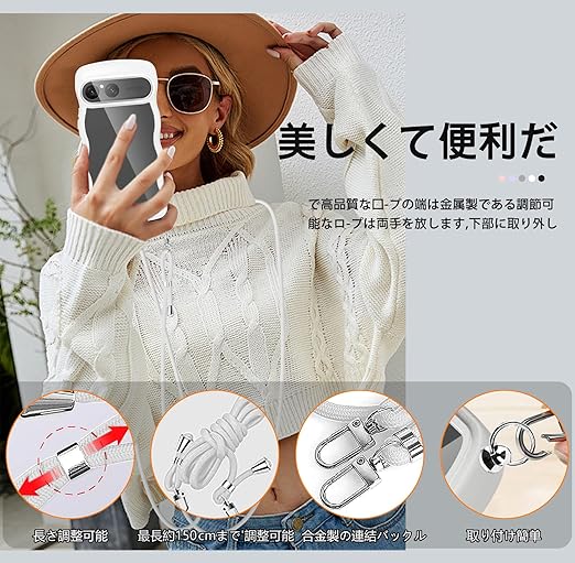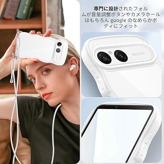 Xperia 10 VII ケース クリア ショルダー SO-52F スマホケース 耐衝撃 エクスペリア 10 VII カバー 薄型 軽量 首かけ 肩掛け 縄掛けケース ストラップ付き 取り外し可能 長さ調整可能 ワイヤレス充電対応 透明 (ホワイト) a