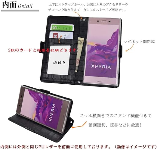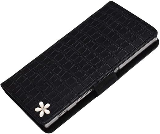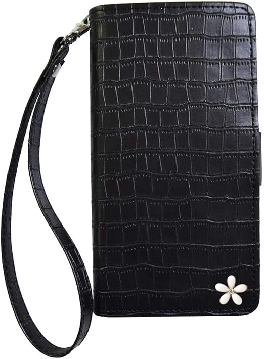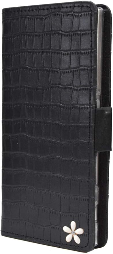 【Salon de M】ケース Xperia 10 II SO-41A SOV43 対応 スマホカバー 携帯 PUレザー 合皮 可愛い 人気 おしゃれ 財布 スタンド 鏡 ミラー 付 手帳ケース 鰐柄 手帳型ケース 横開き カード収納 花 はな 飾り PUJZ-141-1-H ブラック 黒 a