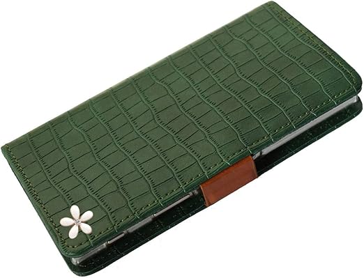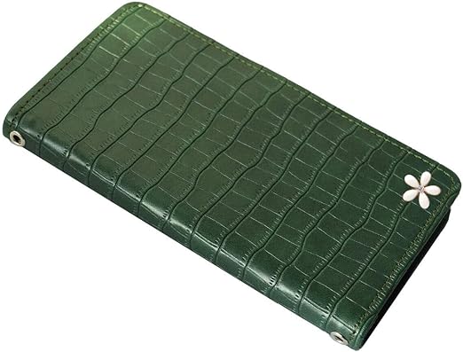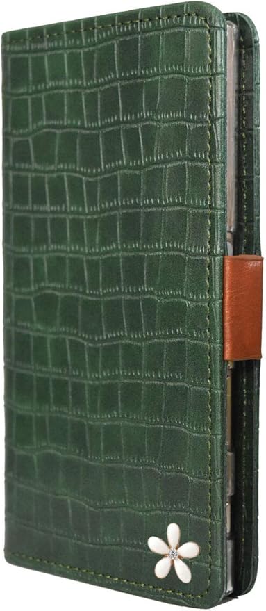 【Salon de M】ケース Xperia 10 II SO-41A SOV43 対応 スマホカバー 携帯 PUレザー 合皮 可愛い 人気 おしゃれ 財布 スタンド 鏡 ミラー 付 手帳ケース 鰐柄 手帳型ケース 横開き カード収納 花 はな 飾り PUJZ-141-5-H ダークグリーン a