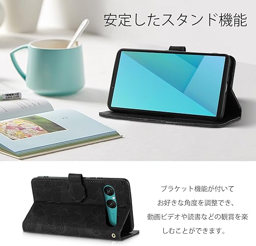 CASAFUNY 向けの Xperia 10 VII ケース 手帳型 人気 エクスペリア10 vii ケース 手帳型 おしゃれ かわいい 美しい桜の柄 Xperia 10 マーク 7 携帯カバー 耐衝撃 本革レザー SO-52Fお洒落 カバー 財布型 スマホケース カード収納 マグネット式 スタンド機能 軽量 6.1インチ(くろい) a