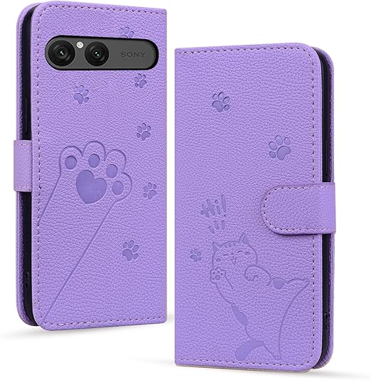 Mldjomid 向けのXperia 10 VII ケース 手帳型 エクスペリア10 vii 携帯カバー 手帳型 エクスペリア 10 第7世代 SO-52F 用 case 幸せな子猫 内蔵マグネット カード入れ 軽量 PUレザー 6.1インチ対応 ソニー Xperia 10 VII スマホケース 全面保護 スタンド機能カード収納 ケース 人気 上質 かわいい猫の足模様 (紫色) a