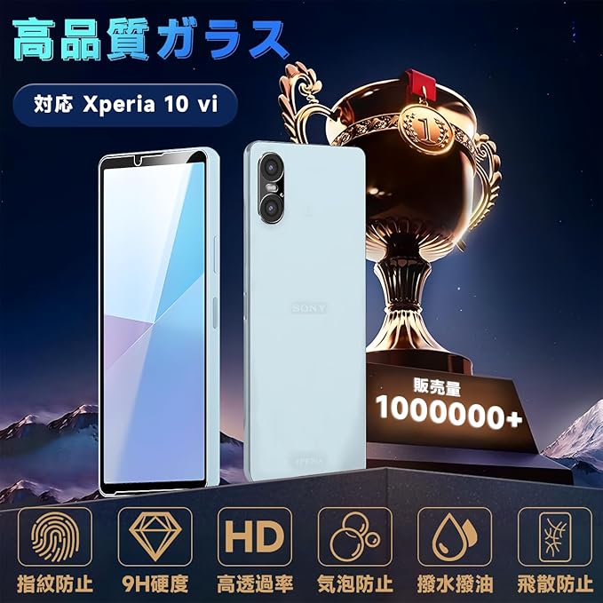 対応 Xperia 10 VI SO-52E / SOG14 / XQ-ES44 フイルム【2+2枚セット-国産AGC旭硝子 - 高 品質 】 エクスペリア10VI ガラスフイルム + レンズ 保護フィルム えくすへ10VI スマホ 液晶 保護フィルム 強化ガラス 気泡ゼロ 飛散防止 高感度 衝撃吸収 指紋防止 ラウンドエッジ加工 a