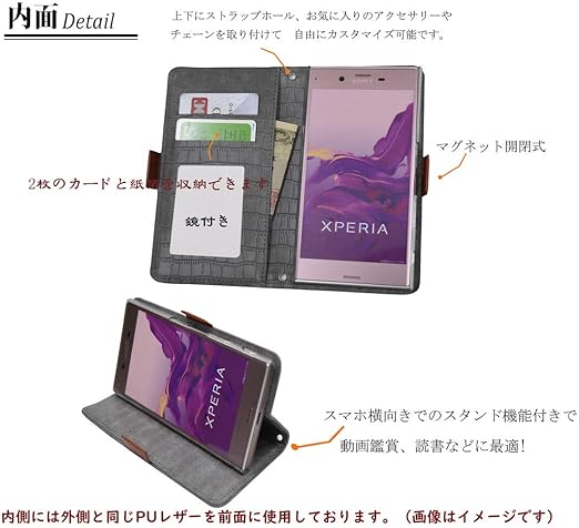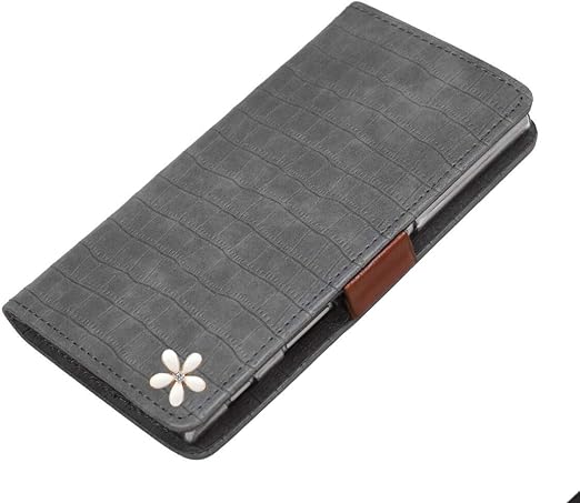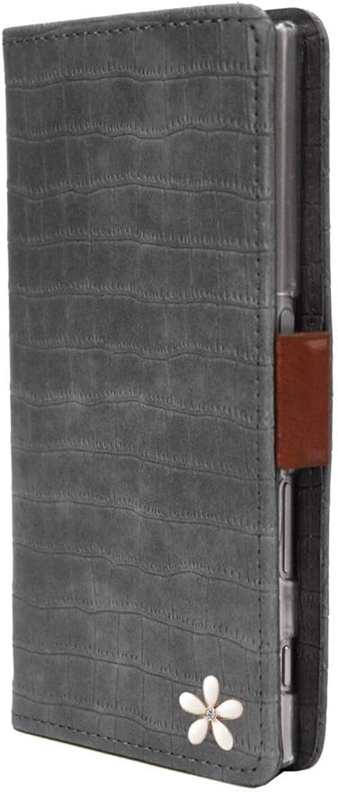 【Salon de M】ケース Xperia 10 II SO-41A SOV43 対応 スマホカバー 携帯 PUレザー 合皮 可愛い 人気 おしゃれ 財布 スタンド 鏡 ミラー 付 手帳ケース 鰐柄 手帳型ケース 横開き カード収納 花 はな 飾り PUJZ-141-7-H グレー a