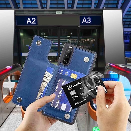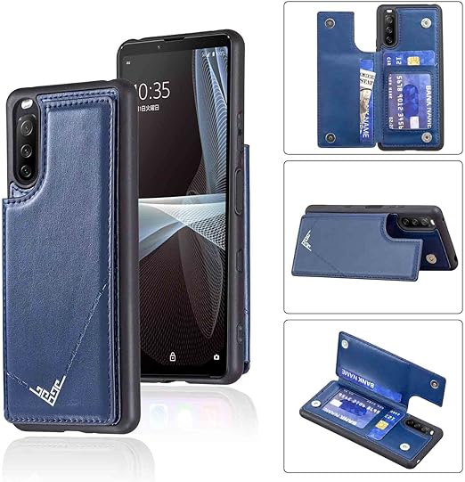 【Anrek】新型 SONY Xperia 10 IV/SO-52C/SOG07/A202SO 用 背面 カードケース 手帳型 背面カバー (ネイビーブルー) エクスペリア10iv スマホケース 横置き機能 PUレザー 財布型 携帯カバー xperia10iv BLUE a
