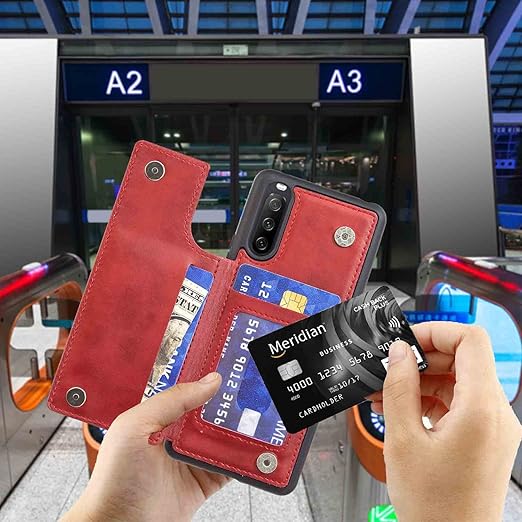 【Anrek】新型 SONY Xperia 10 IV/SO-52C/SOG07/A202SO 用 背面 カードケース 手帳型 背面カバー (レッド) エクスペリア10iv スマホケース 横置き機能 PUレザー 財布型 携帯カバー xperia10iv RED a