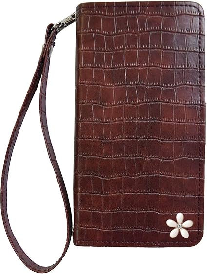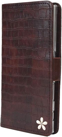 【Salon de M】ケース Xperia 10 II SO-41A SOV43 対応 スマホカバー 携帯 PUレザー 合皮 可愛い 人気 おしゃれ 財布 スタンド 鏡 ミラー 付 手帳ケース 鰐柄 手帳型ケース 横開き カード収納 花 はな 飾り PUJZ-141-4-H ブラウン a
