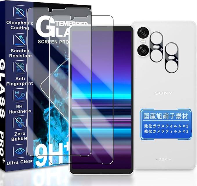 JCJCLY 対応 Xp 10 VI SO-52E / SOG14 ガラスフィルム 6.1インチ【2枚強化ガラス+2枚カメラフィルム セット】国産旭硝子素材製「硬度9H 耐衝撃 飛散防止 衝撃吸収 厚さ0.26mm超薄型 高透過率 高感度 ラウンドエッジ加工 超高質感 指紋防止 貼り付け簡単 自動吸着 気泡ゼロ 」JCXP10VI22 a