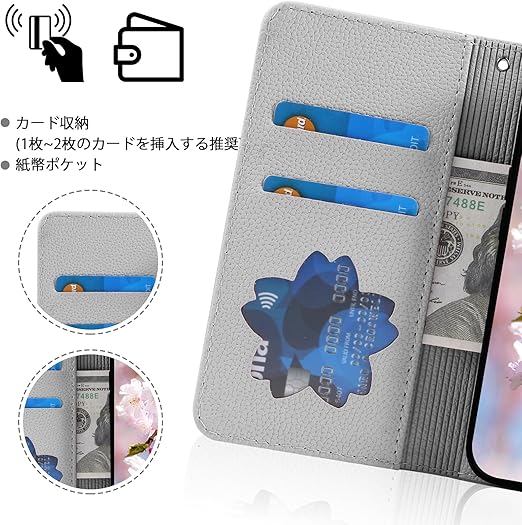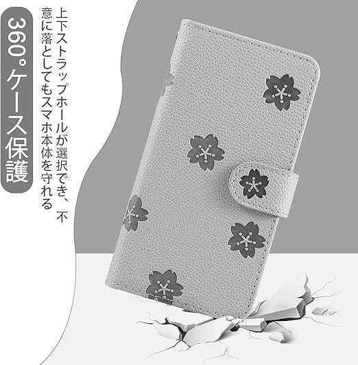 Qribo Xperia 10V ケース 手帳型 純潔な 美しい桜パターン 財布型 Xperia 10 V 手帳型ケース SO-52D ケース SOG11 ケース カードポケット ファッション エレガント 静か エクスペリア10 v ケース Xperia 10 5世代 ケース 手帳型 えくすへりあ10v スマホケース so52d ケース レンズ保護 便利 全面保護 良い手触り グレー a