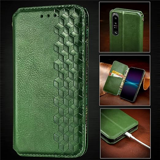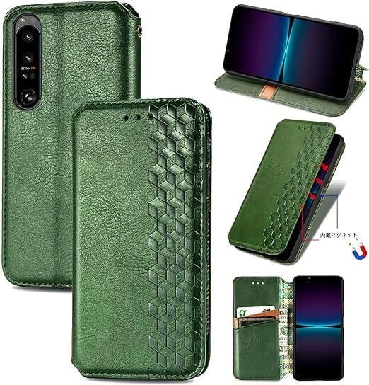 に適用するXperia 1 IV docomo SO-51C au SOG06 softbank A201SO Xperia1 第4世代 ケース 手帳型 ノートブック型ビジネスフォンケース 携帯電話保護カバー強い吸引力ノートブック型多機能携帯電話ホルスター財布携帯電話ホルダーバンプパターンテクスチャ耐久性摩擦耐性携帯電話ケース男性と女性に適した多色オプション (グリーン) a