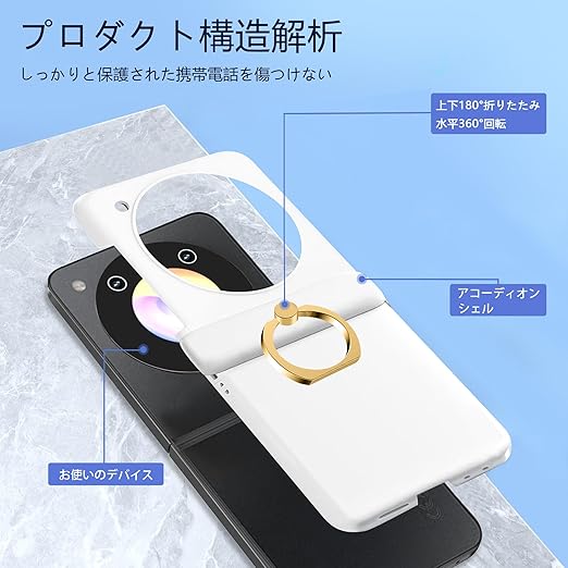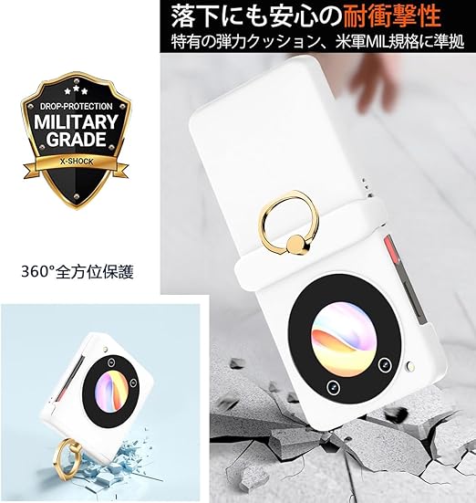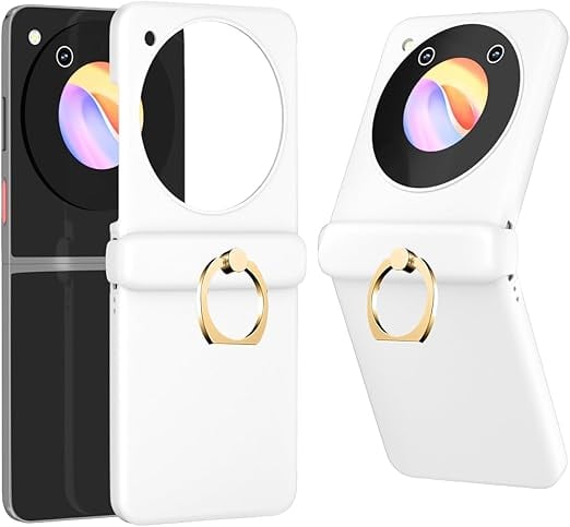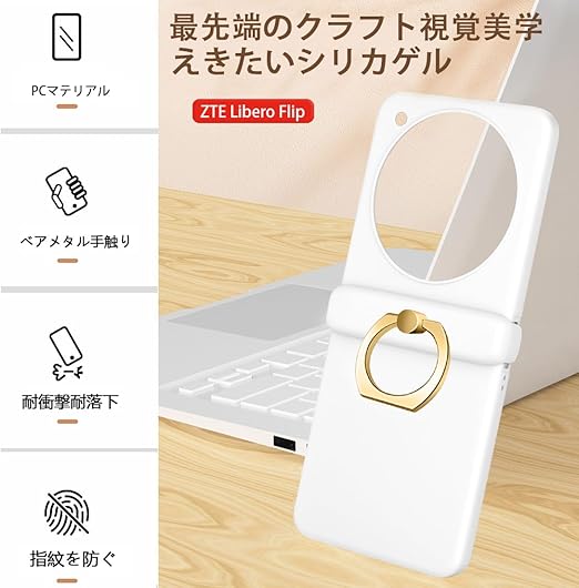 PAILAIMEN ZTE Libero Flip 5G ケース リング付き nubia Flip 5G 用 ケース 擦り傷防止 スタンド機能 A304ZT スマホケース 耐衝撃 ZTE Libero Flip 専用 カバー PC libero flip スマホケース 背面に保護フィルム付き ストラップ穴付き 落下防止 滑り止め、すり傷防止(ホワイト) a