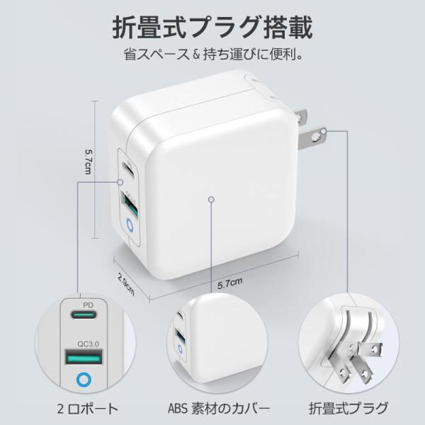 65w iphone 充電器 PD usb-c 充電器 type-c usb 急速充電器 超低温 GaNIII技術 タイプc 2ポート LED指示灯1