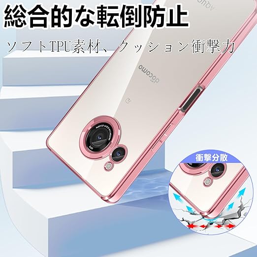 AQUOS R8 ケース クリア 耐衝撃 SH-52D アクオスR8 ケース 透明 sh52d スマホケース カバー TPU ストラップホール付き(AQUOSR8,ローズゴールド)