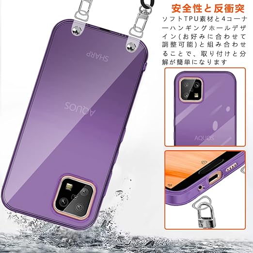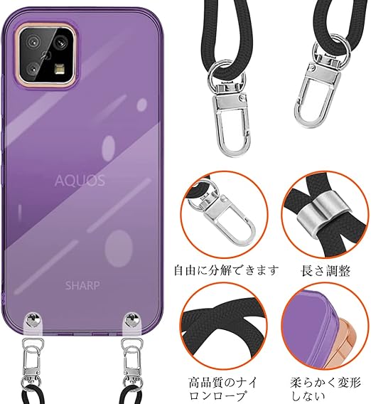 AQUOS sense6 ケース AQUOS sense6s ケース TPU 新型韓国 ネック ショルダー ストラップ付き スマホ シリコン カバー SH-54B SHG05 ケース 紐付き 斜めがけ 織りストラップ付き 調節可能なショルダー アクオス sense6 カバー